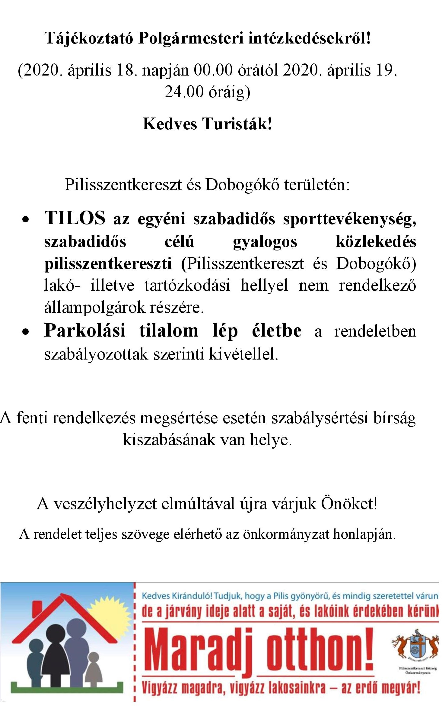Pilisszentkereszt Önkormányzat Polgármestere rendeleti úton szabályozta a húsvéti ünnepekre adott felhatalmazás alapján a kijárási korlátozás helyi szabályozását.