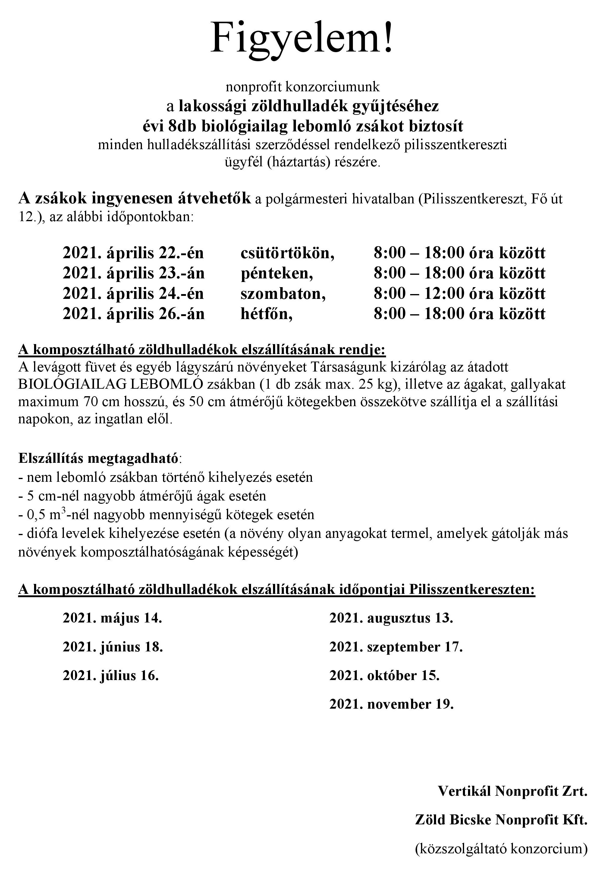 Tájékoztatás - Zöldhulladék gyűjtés