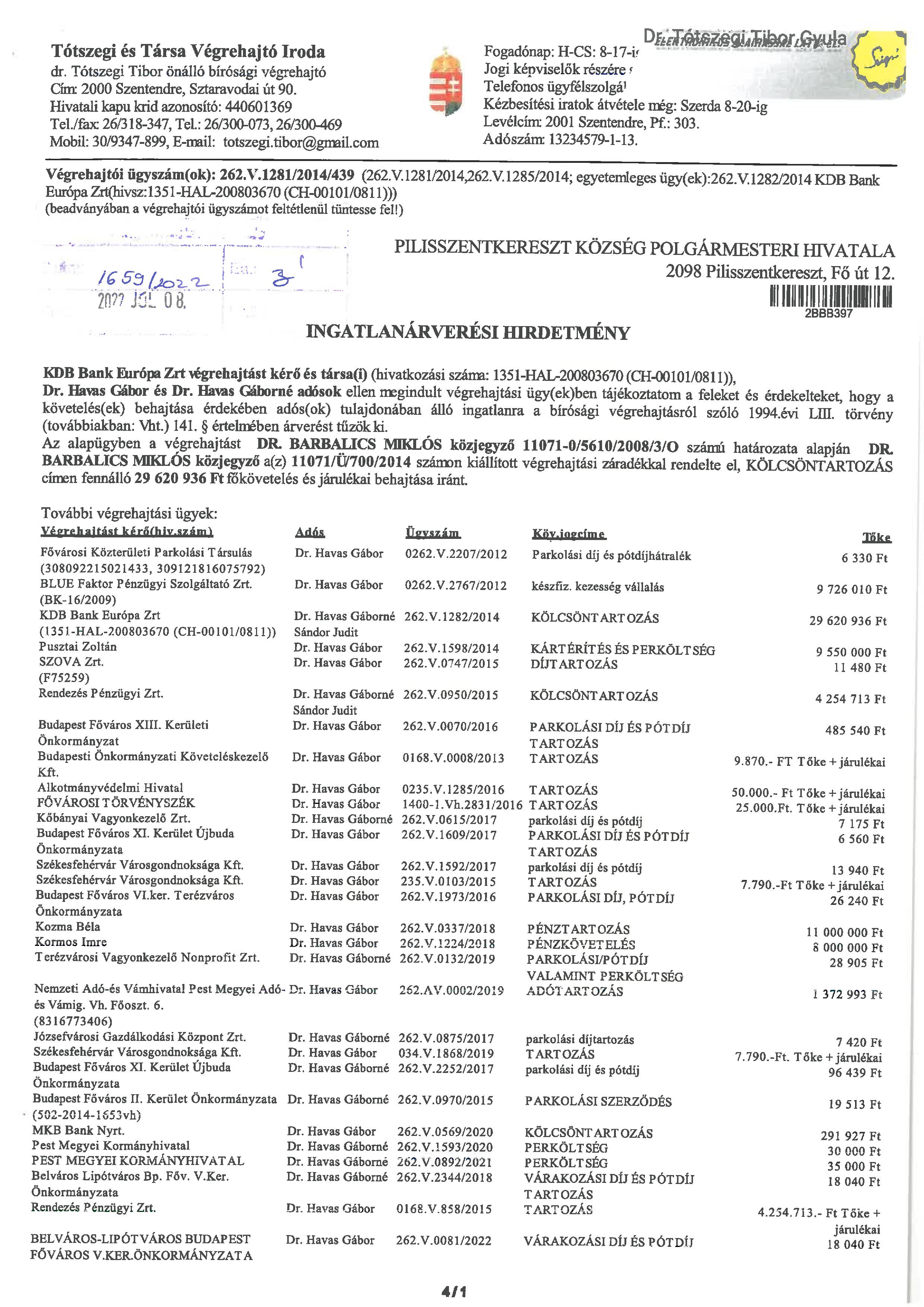 Ingatlanárverési hirdetmény Dr. Havas G. 1.oldIngatlanárverési hirdetmény Dr. Havas G. 2.old