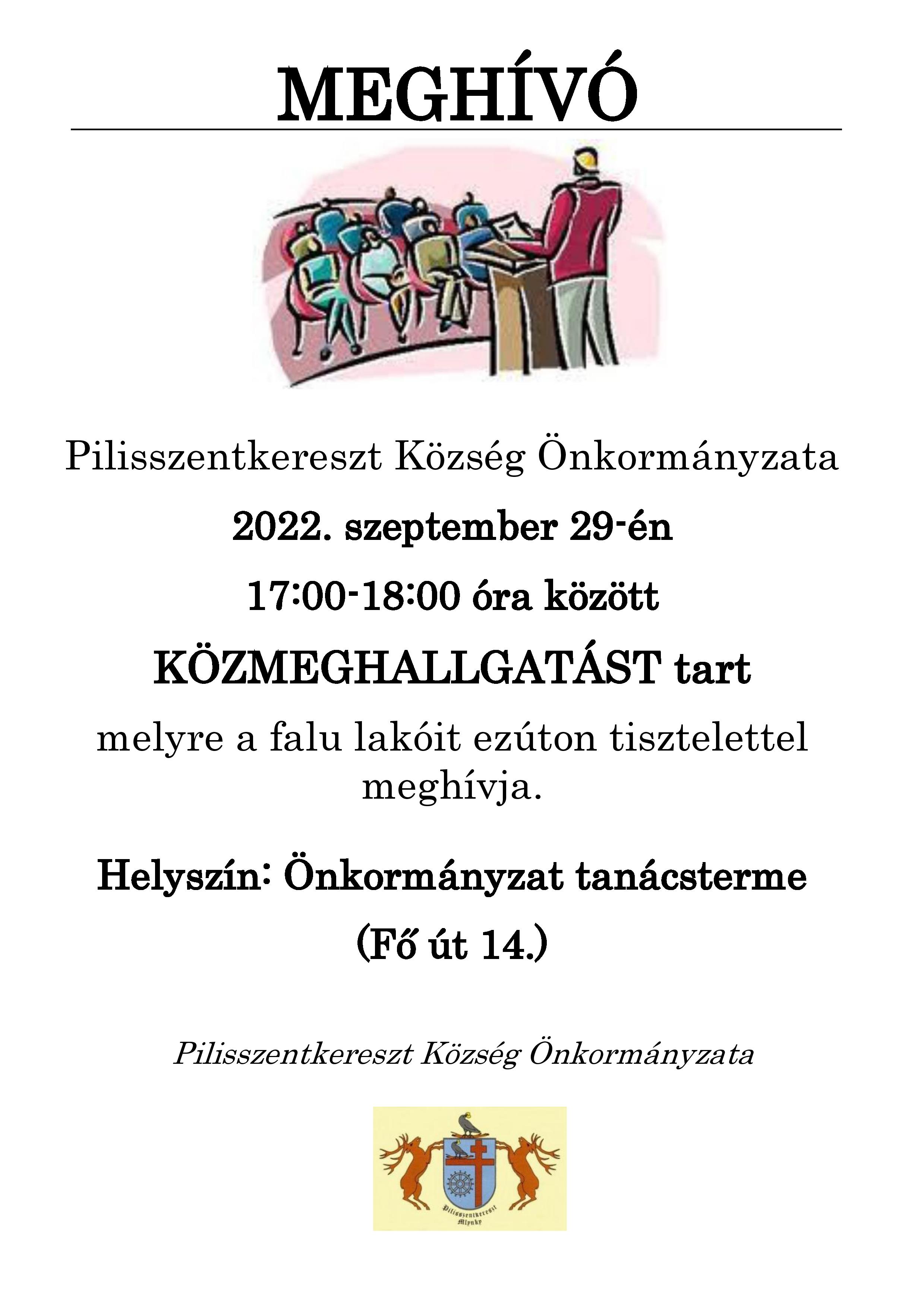 2022. szeptember 29-én (csütörtök) 17.00 órakor közmeghallgatással egybekötött testületi ülést tart, melyre tisztelettel meghívom.