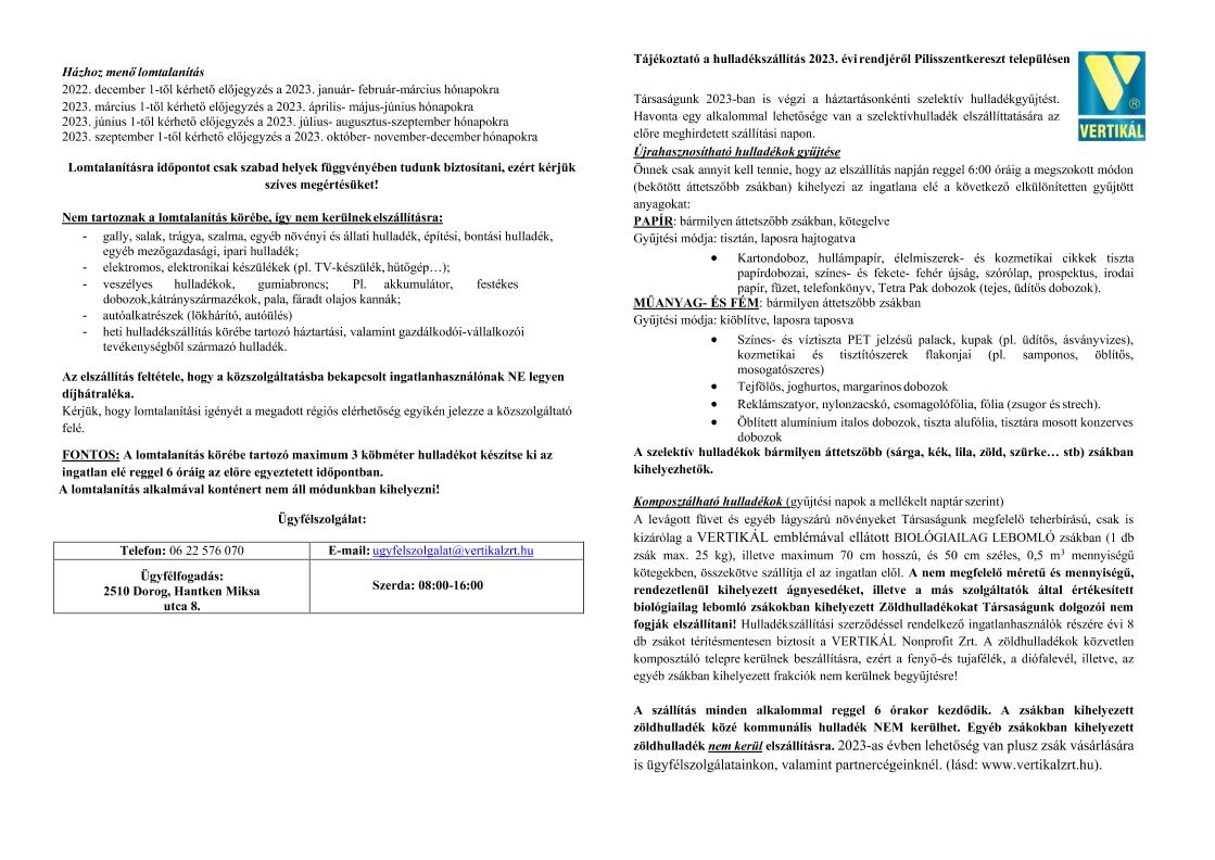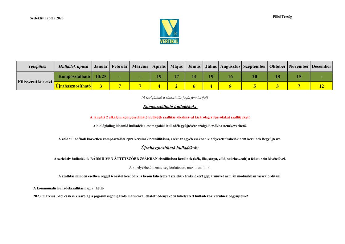 Szelektív hulladékgyűjtés 2023.